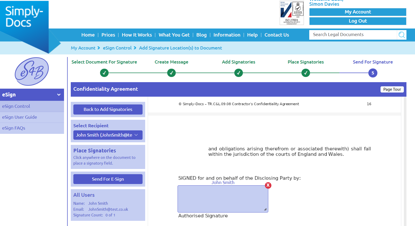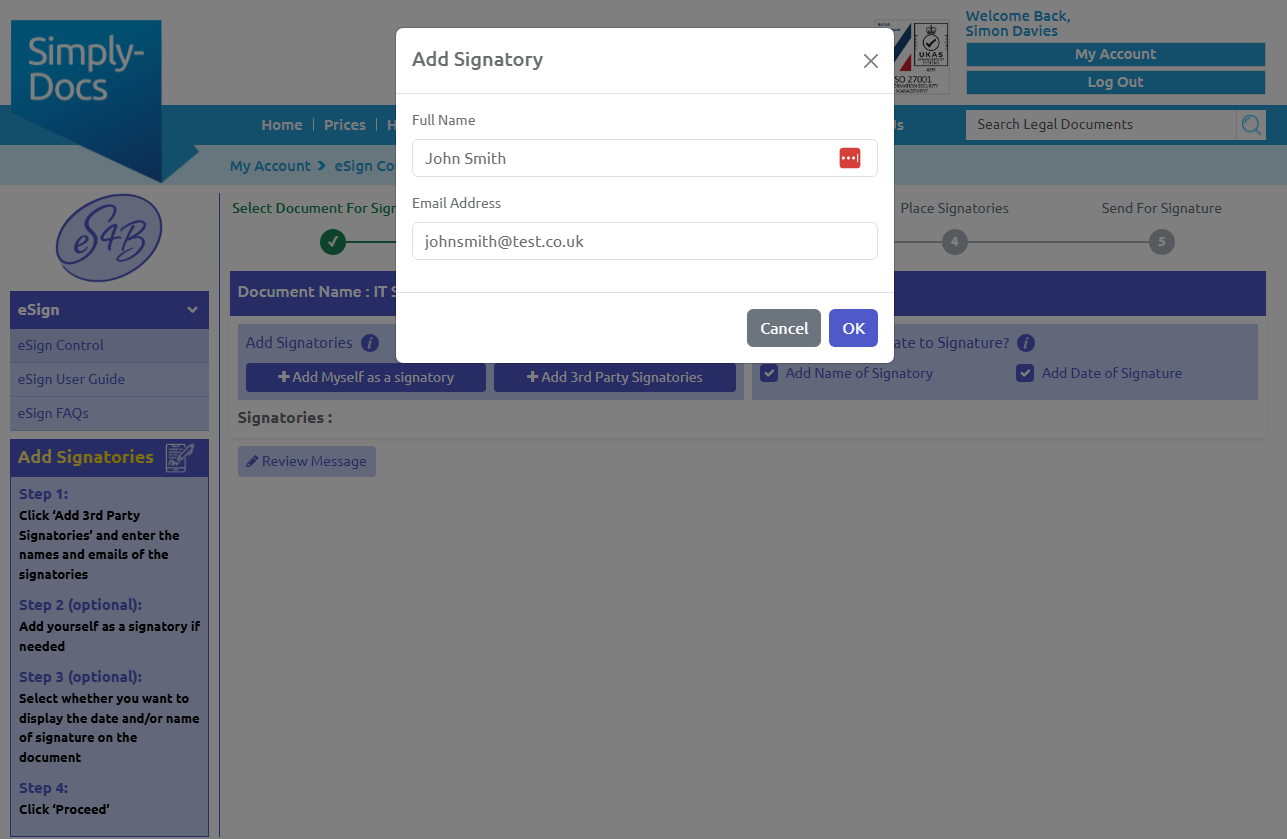To keep Simply-Docs anonymous during the signing process, all signature request emails are sent under the eSign4Business brand.